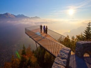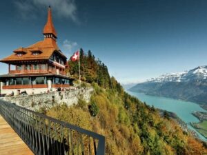 Đến Interlaken, đoàn đi tàu (10phút) lên đài quan sát Harder Kulm – Harder Kulm là đài quan sát với tầm nhìn tuyệt đẹp hướng ra thị trấn Interlaken, Brienz, và Khu vực Jungfrau. Nơi đây, quý khách có thể ngắm toàn cảnh tuyệt đẹp của thị trấn và thưởng thức bữa trưa trên đỉnh núi với view tuyệt đẹp này.